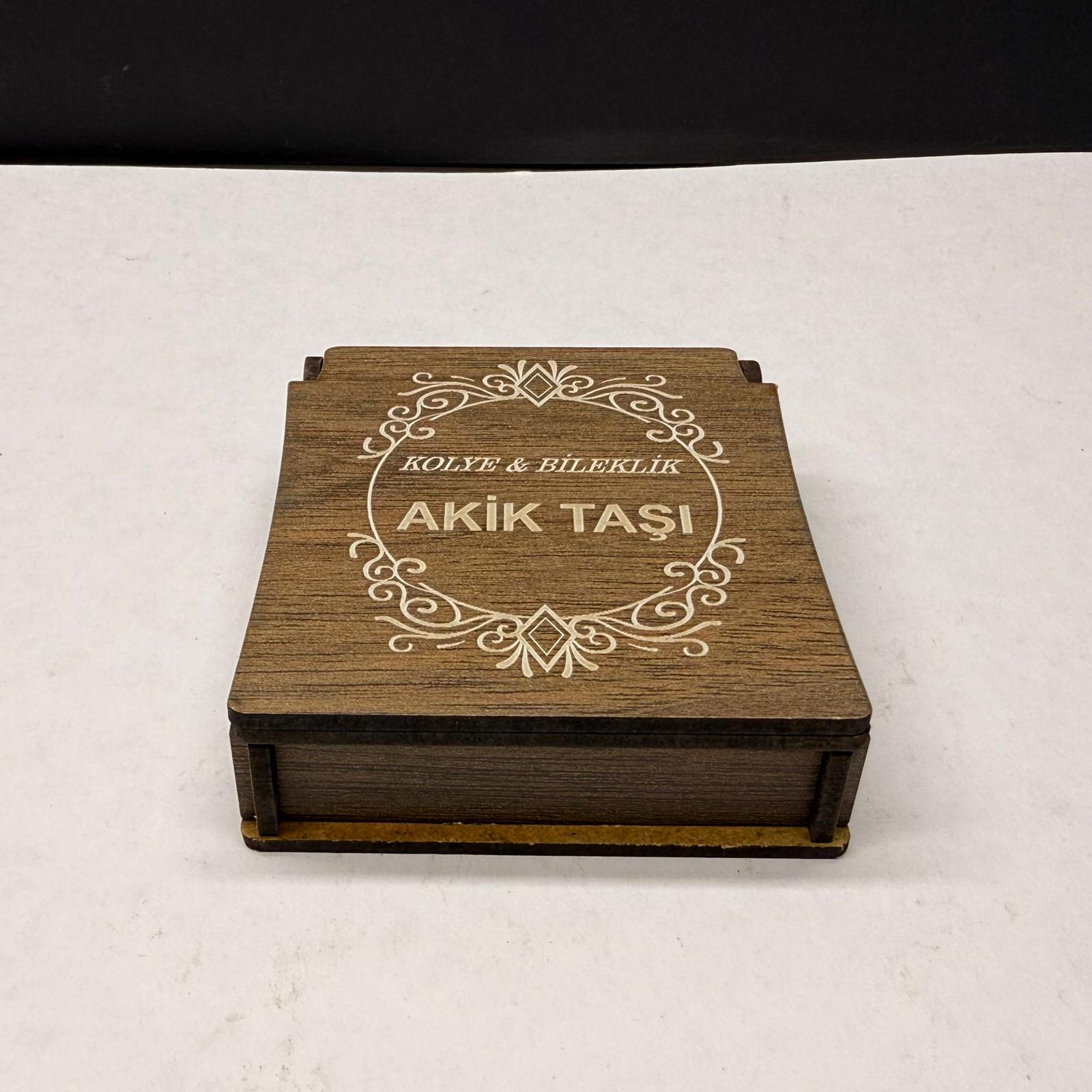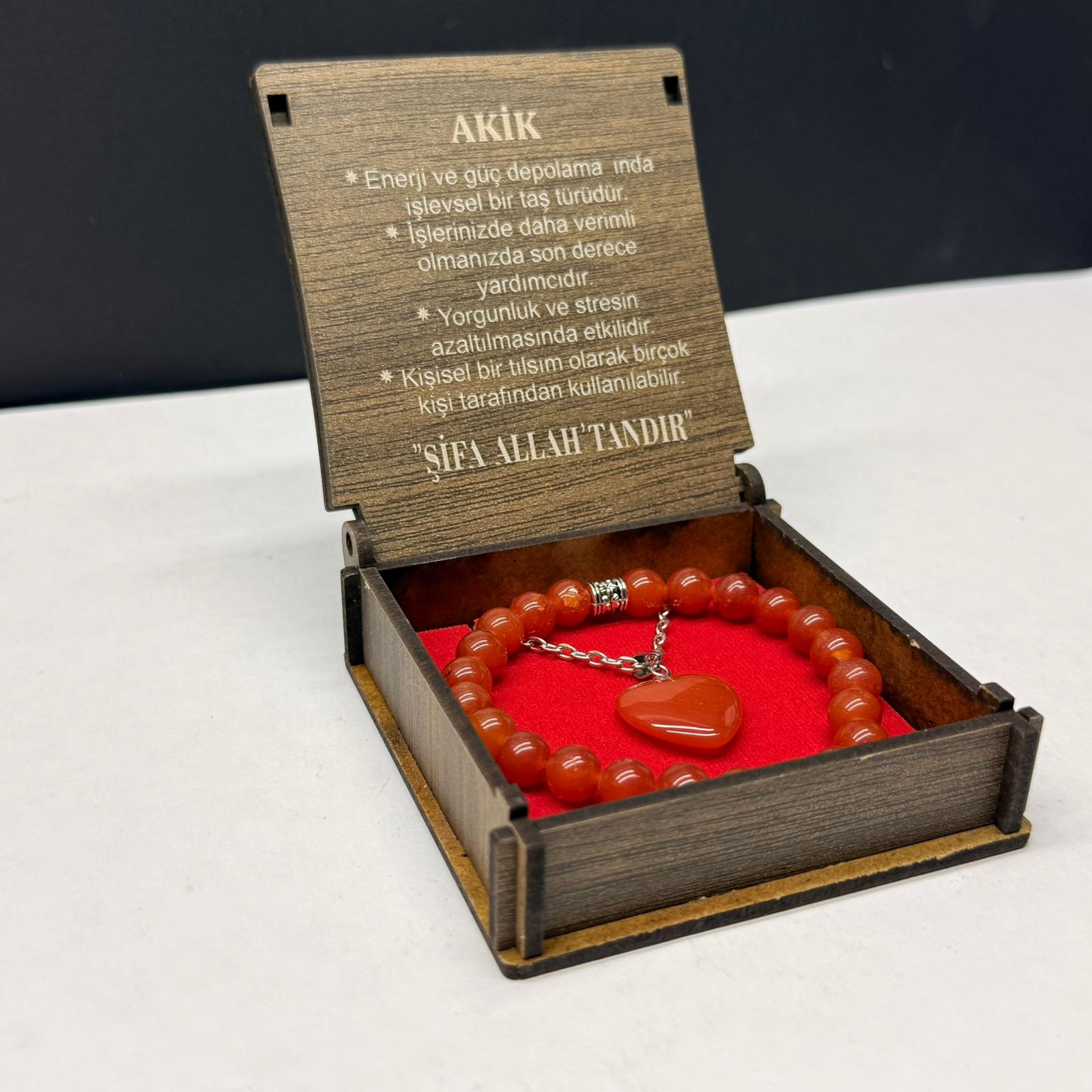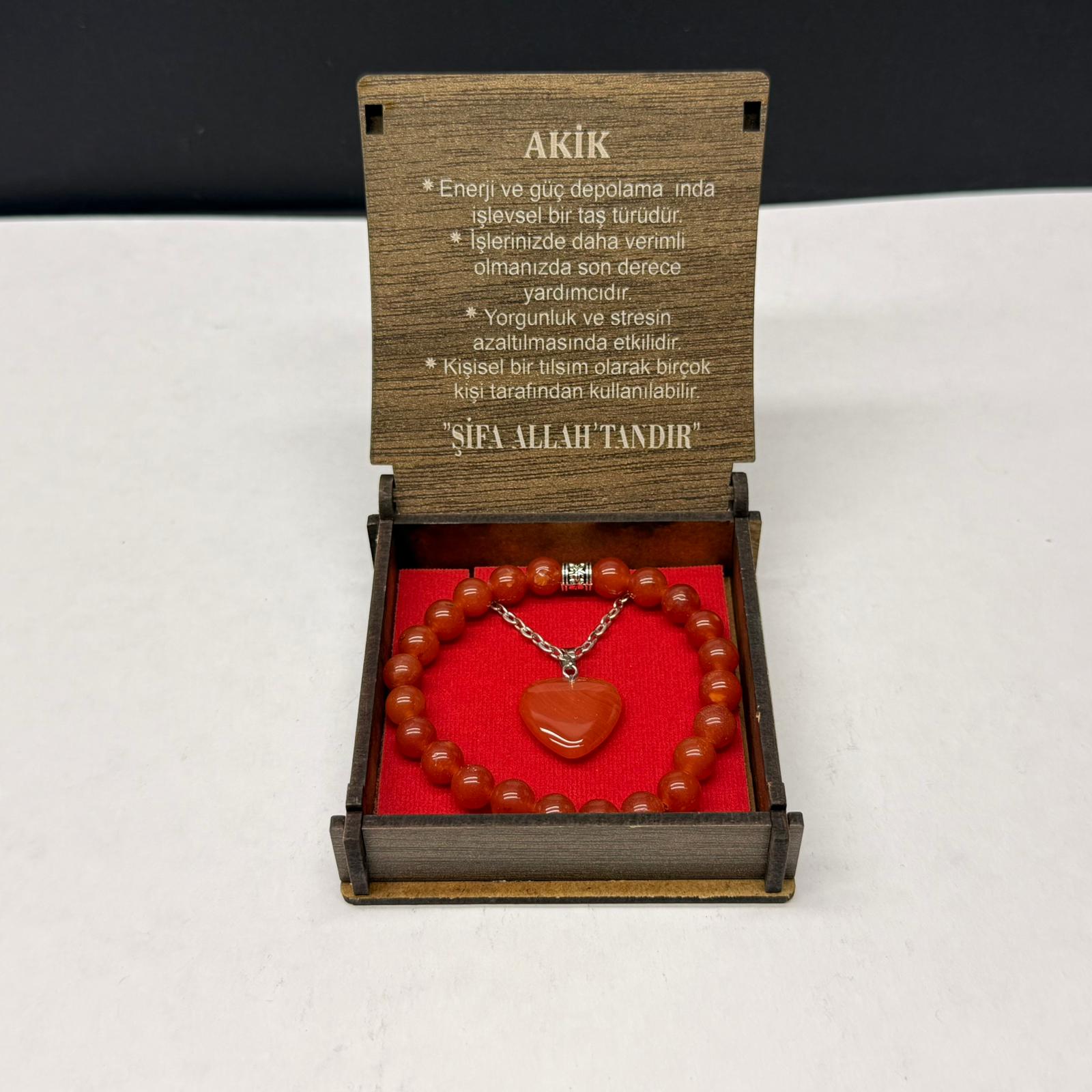 Özel Ahşap Kutulu Kırmızı Akik Taşı Bileklik Kolye Seti